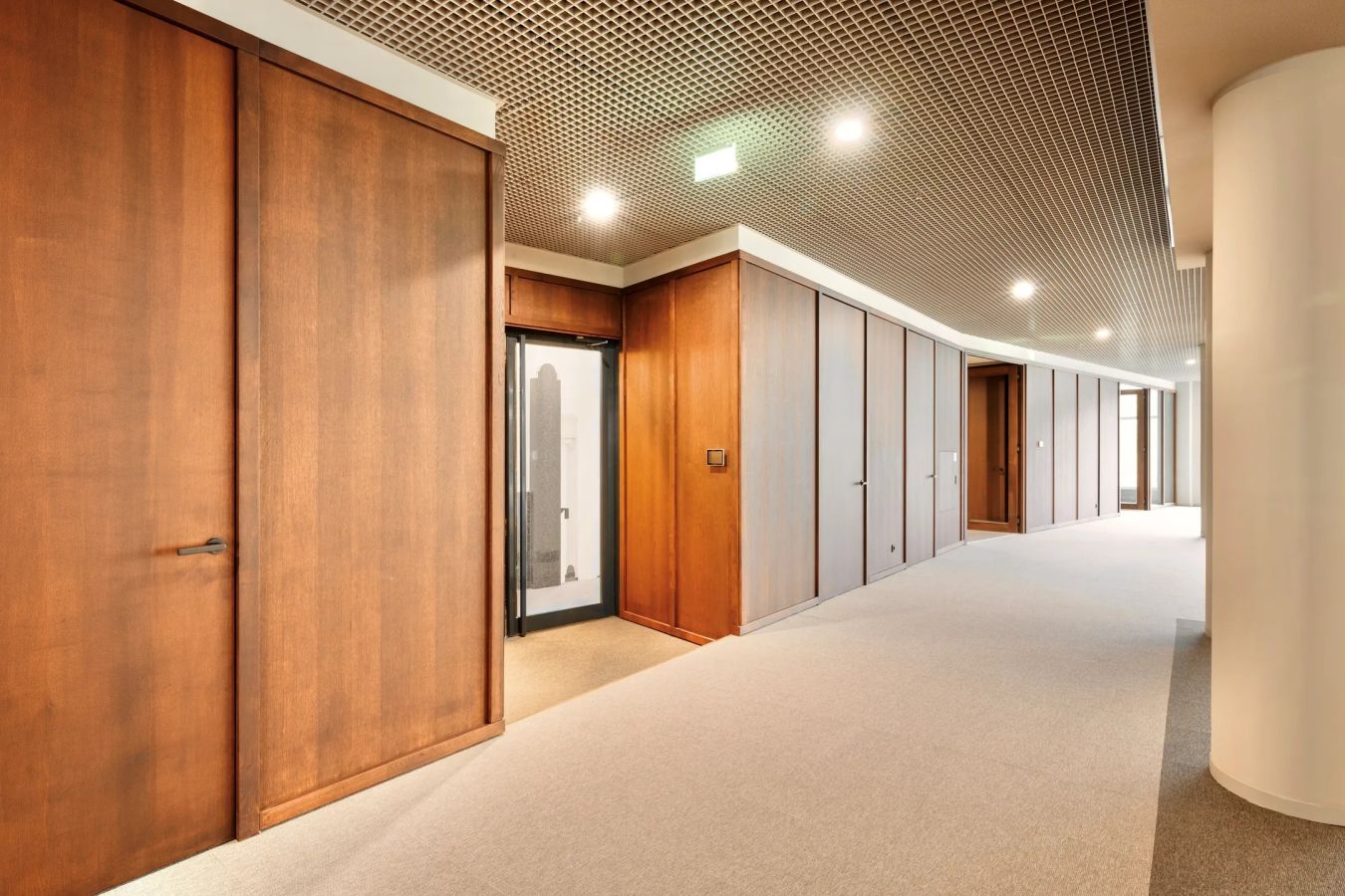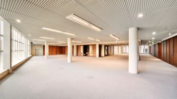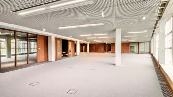 • Industrieel plafond met deels verlaagd plafond;