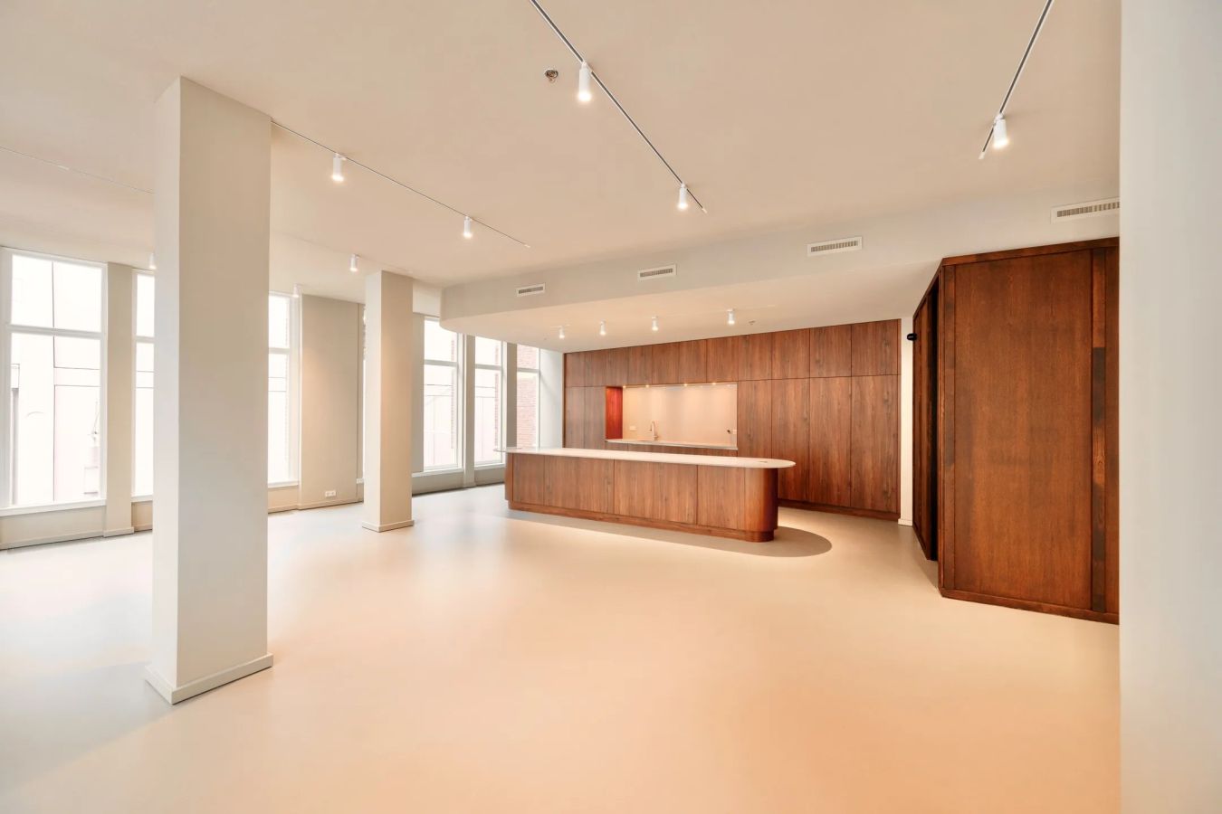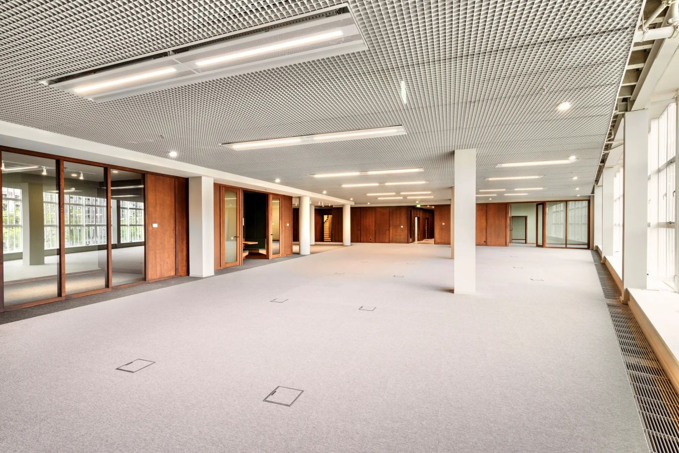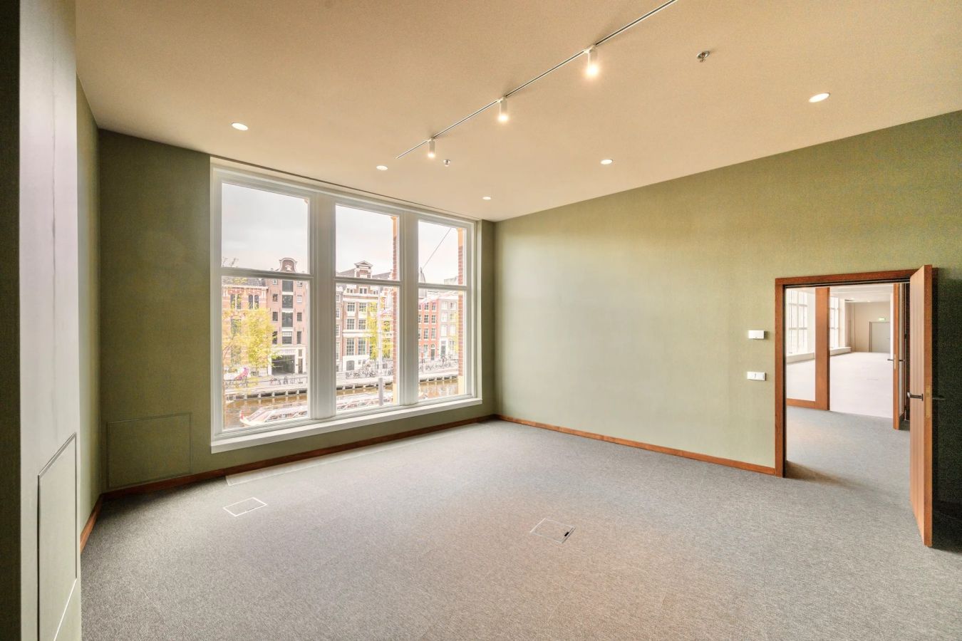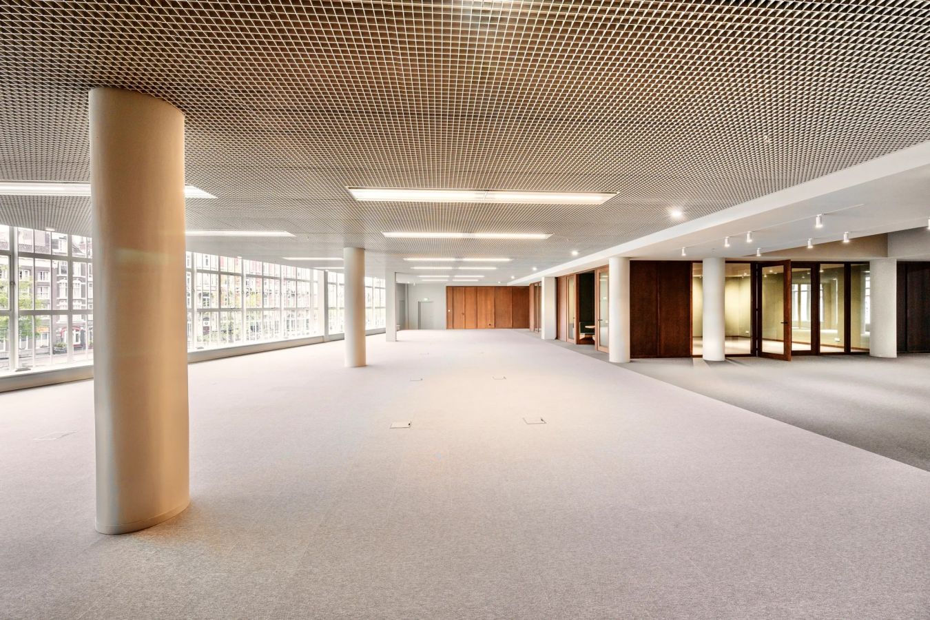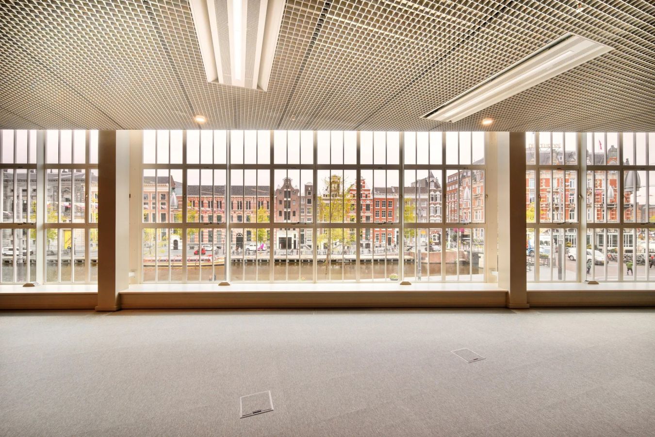 De grote vloer-tot-plafond raampartijen zorgen voor veel natuurlijk daglicht en bieden een fraai uitzicht over het Rokin. Met plafondhoogtes variërend van circa 3,2 tot 3,8 meter ontstaat een ruimtelijke en representatieve werkomgeving.
